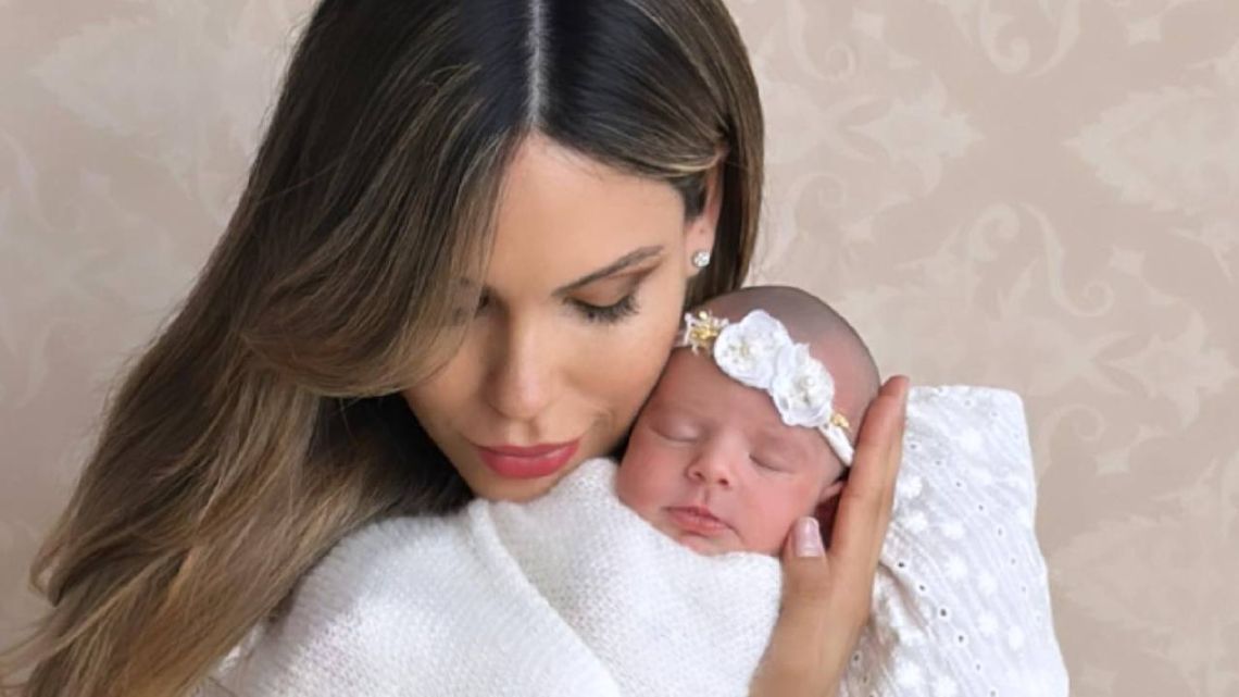 Luego, la modelo compartió una foto en plena lactancia y dijo: «Despegué…. y teta». Por último, indicó: «Felices», con la beba durmiendo en sus brazos.