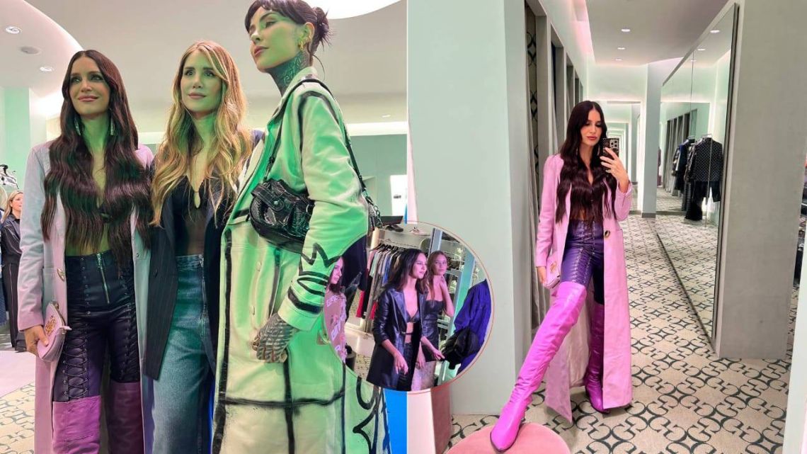 Zaira Nara deslumbró con los imponentes colores que llegan en esta nueva temporada. Quien llevaba un pantalón similar al de Juanita Tinelli, de cuero violeta con cierre al frente y cordones cruzados en ambas piernas, con botas bucaneras color magenta.